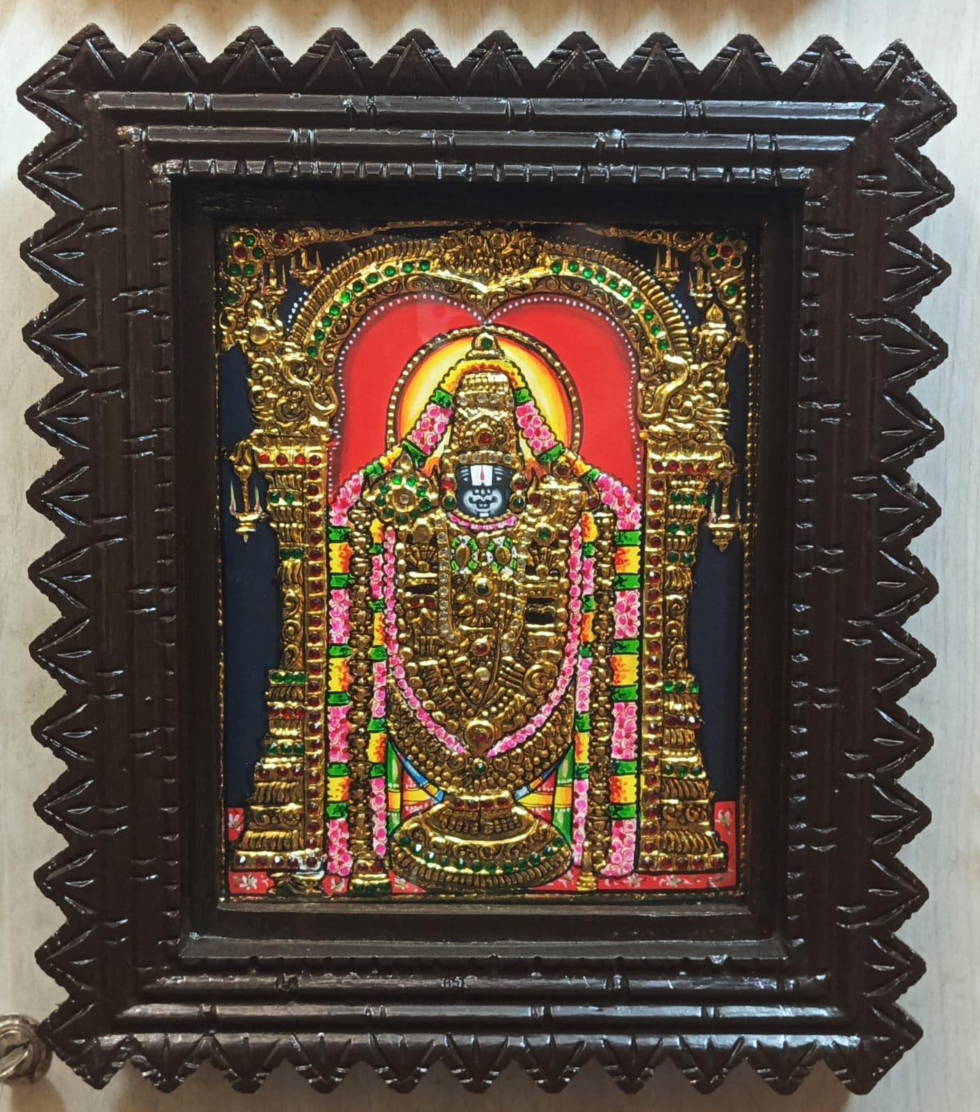 Balaji is another name for Lord Venkateswara, a form of the Hindu god Lord VishnuHe is also known by other names such as Srinivasa, Govinda, and Perumal, and is particularly revered at the Tirumala Venkateswara Temple.   CLARITY : Tanjore painting is taken with glass so its glaring, if you see directly it looks very beautiful than model picture!