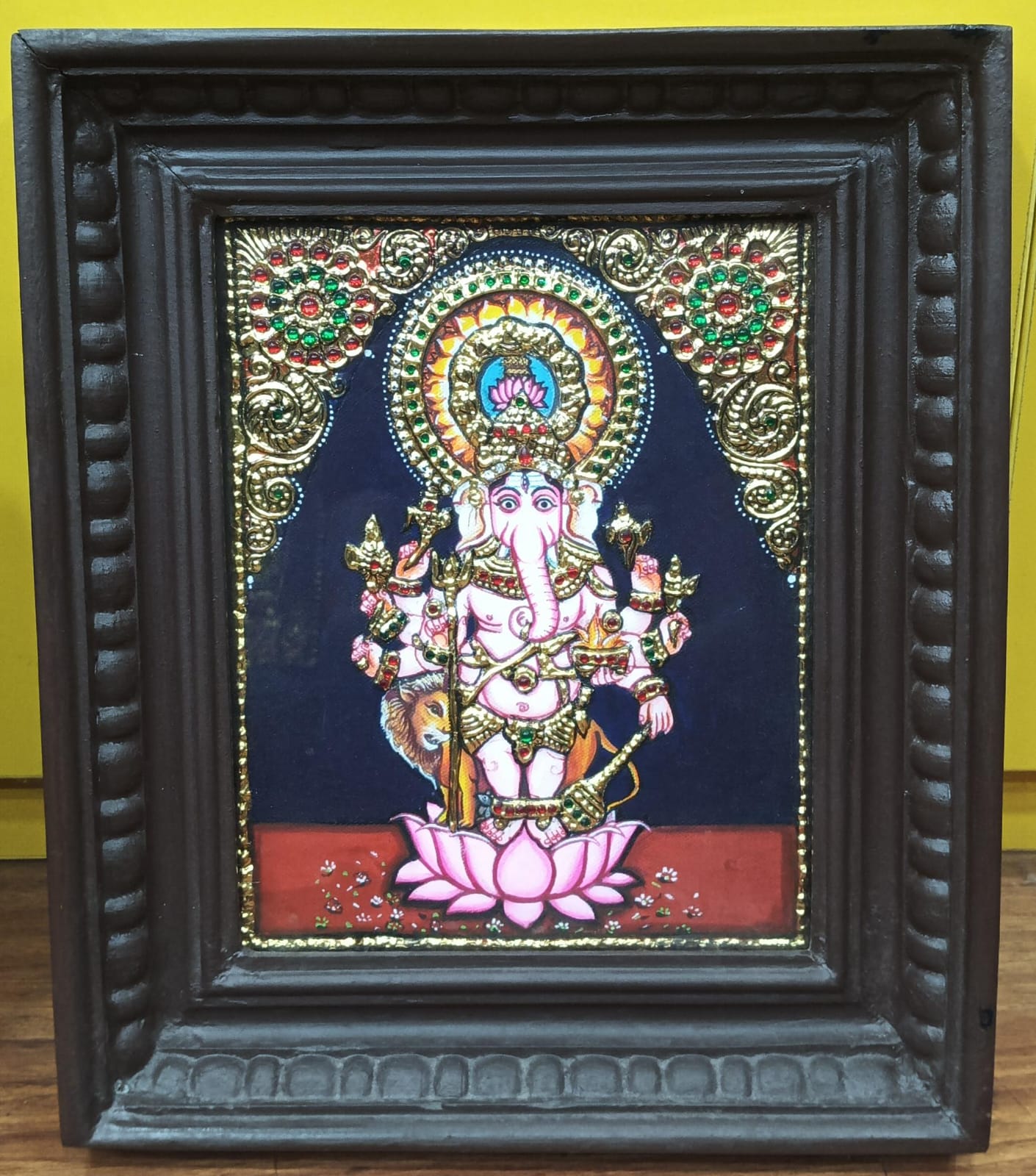Kan Drishti Vinayagar is a form of Lord Ganesha specifically worshipped for protection against the evil eye and negativity. Worshippers believe he removes obstacles, black magic, and problems caused by enemies. People often display pictures or statues of Kan Drishti Vinayagar in their homes and businesses to safeguard their space, with the large, piercing eyes being a key feature believed to ward off evil spirits. CLARITY : Tanjore painting is taken with glass so its glaring, if you see directly it looks very beautiful than model picture!