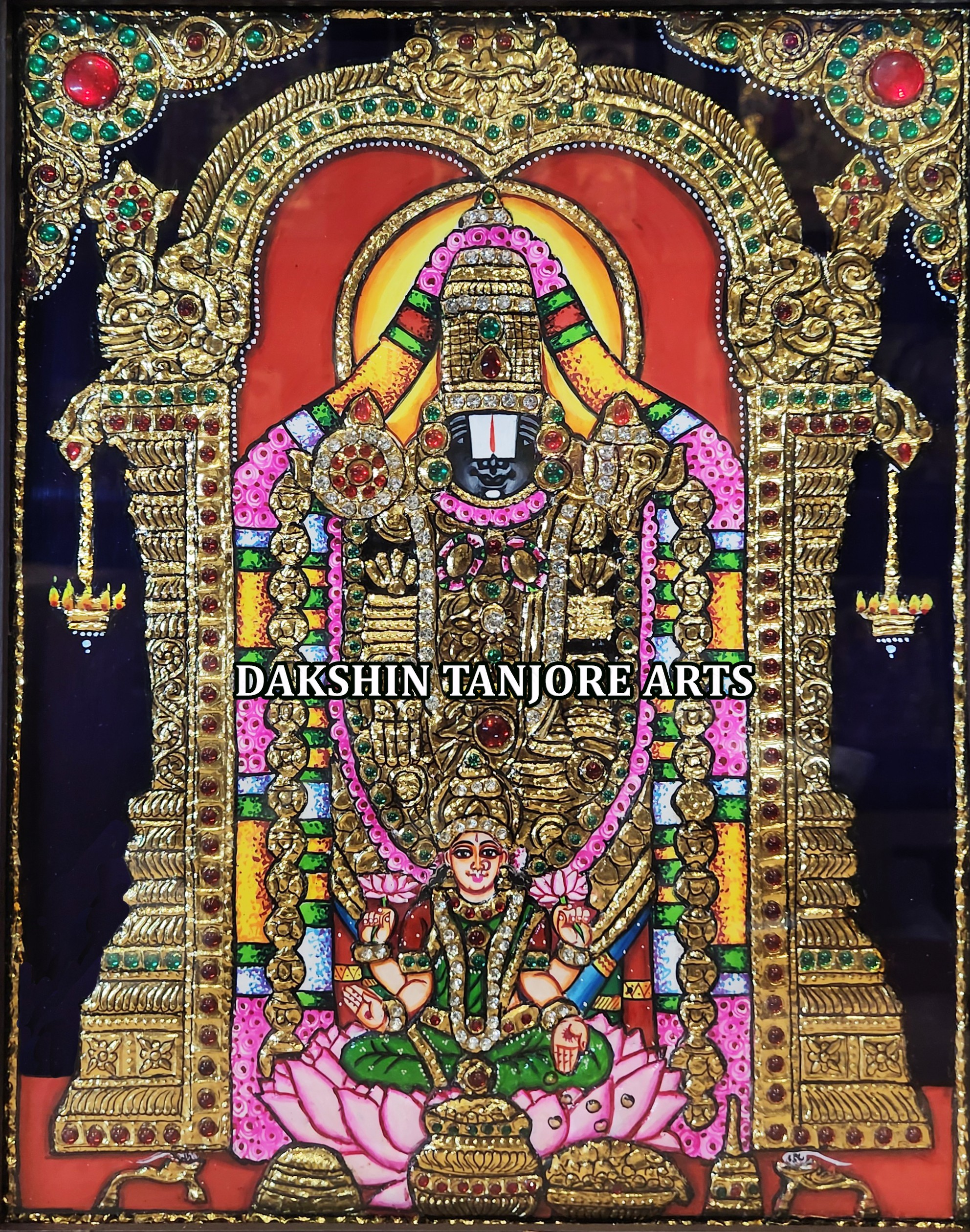 "Laxmipati Balaji" is a combined reference to the Hindu deity Lord Venkateswara (also known as Balaji or Srinivasa) and his consort Lakshmi. Lord Venkateswara is a form of the god Vishnu and is a major deity worshipped at the Tirumala Venkateswara Temple in Andhra Pradesh, India. The term "Laxmipati" means "husband of Lakshmi," highlighting this connection . CLARITY : Tanjore painting is taken with glass so its glaring, if you see directly it looks very beautiful than model picture!