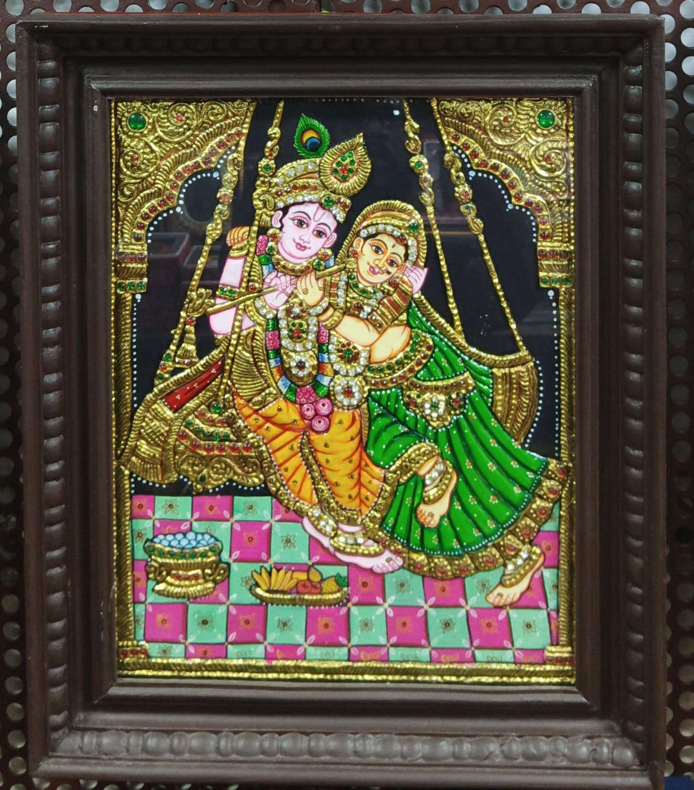 She is the goddess of love, tenderness, compassion, and devotion. In scriptures, Radha is mentioned as the avatar of Lakshmi and also as the Mūlaprakriti, the Supreme goddess, who is the feminine counterpart and internal potency (hladini shakti) of Krishna. Radha accompanies Krishna in all his incarnations. CLARITY : Tanjore painting is taken with glass so its glaring, if you see directly it looks very beautiful than model picture!